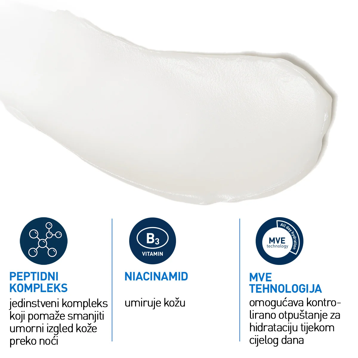 SASTAV: AQUA/WATER, GLYCERIN, DIMETHICONE, CAPRYLIC/CAPRIC TRIGLYCERIDE, BUTYROSPERMUM PARKII BUTTER/SHEA BUTTER, NIACINAMIDE, GLYCERYL STEARATE SE, DIMETHICONE/VINYL DIMETHICONE CROSSPOLYMER, CETYL ALCOHOL, ZEA MAYS STARCH/CORN STARCH, SACCHARIDE ISOMERATE, STEARIC ACID, PALMITIC ACID, GLYCINE SOJA STEROLS/SOYBEAN STEROLS, ALLANTOIN, CERAMIDE NP, CERAMIDE AP, CERAMIDE EOP, CARBOMER, CETEARYL ALCOHOL, BEHENTRIMONIUM METHOSULFATE, DIMETHICONE CROSSPOLYMER, TRIETHYL CITRATE, SODIUM HYDROXIDE, MYRISTIC ACID, SODIUM LAUROYL LACTYLATE, SODIUM CITRATE, SODIUM HYALURONATE, CHOLESTEROL, PHENOXYETHANOL, TOCOPHEROL, TRIPEPTIDE-1, HYDROXYACETOPHENONE, CITRIC ACID, CAPRYLYL GLYCOL, CAPROOYL TETRAPEPTIDE-3, BIOSACCHARIDE GUM-1, PHYTOSPHINGOSINE, XANTHAN GUM, DEXTRAN, ETHYLHEXYLGLYCERIN, BUTYLENE GLYCOL, BENZOIC ACID