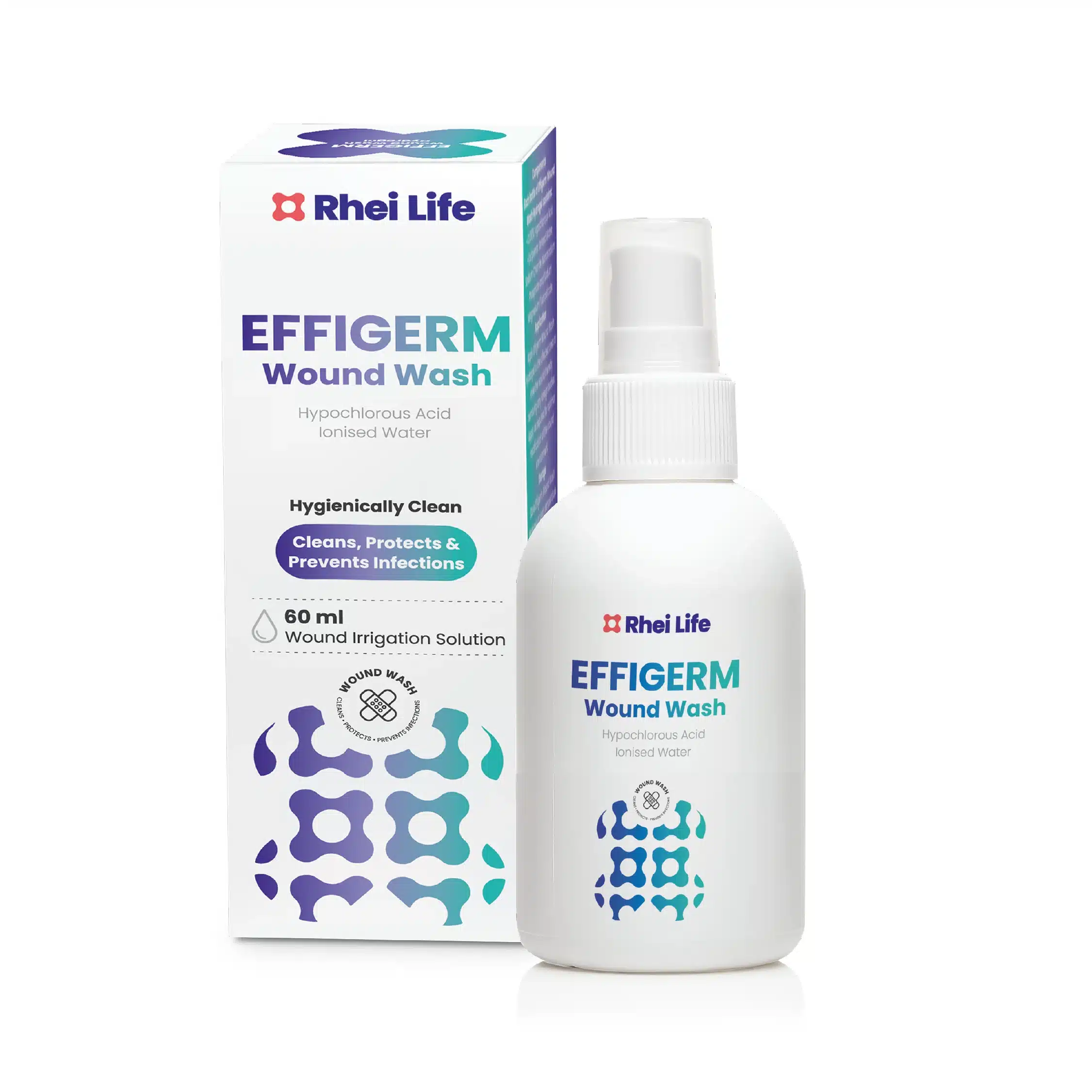 Effigerm Wound Wash Liquid je formulacija tekućine u spreju, jednostavna za uporabu. Radi se o elektroliziranoj oksidirajućoj vodenoj otopini poznatoj kao hipohlorasta kiselina koja je dermatološki testirana.