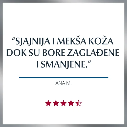 Suzbija proces starenja. Za vidljivo glatku, blistaviju kožu i kožu mladenačkog izgleda.