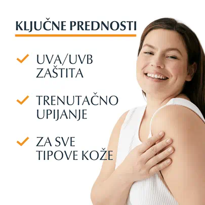 Ekstra lagani losion za zaštitu od sunca odmah se upija i vodootporan je. Sadrži i Eucerinovu ‘Anti-Stain After Wash’ tehnologiju*.