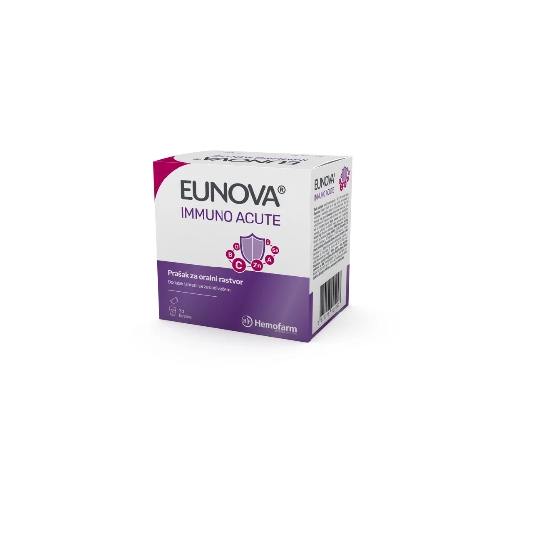 - EUNOVA Immuno Acute je dodatak ishrani, koji sadrži posebno odabranu kombinaciju vitamina, minerala i antioksidanasa za snažnu podršku imunitetu kada vam je najpotrebnije!