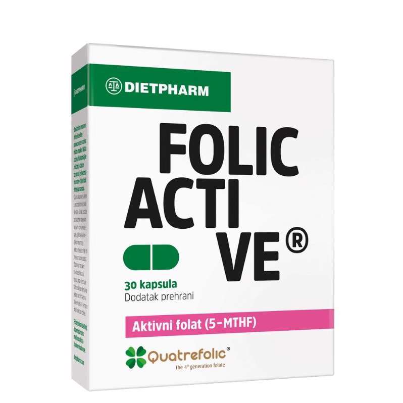 Folic Active kapsule su dodatak prehrani s aktivnim folatom. Folat (Folna kiselina) doprinosi normalnoj sintezi aminokiselina i normalnom stvaranju krvi. Dodanim unosom folne kiseline povećava se razina folata majke.