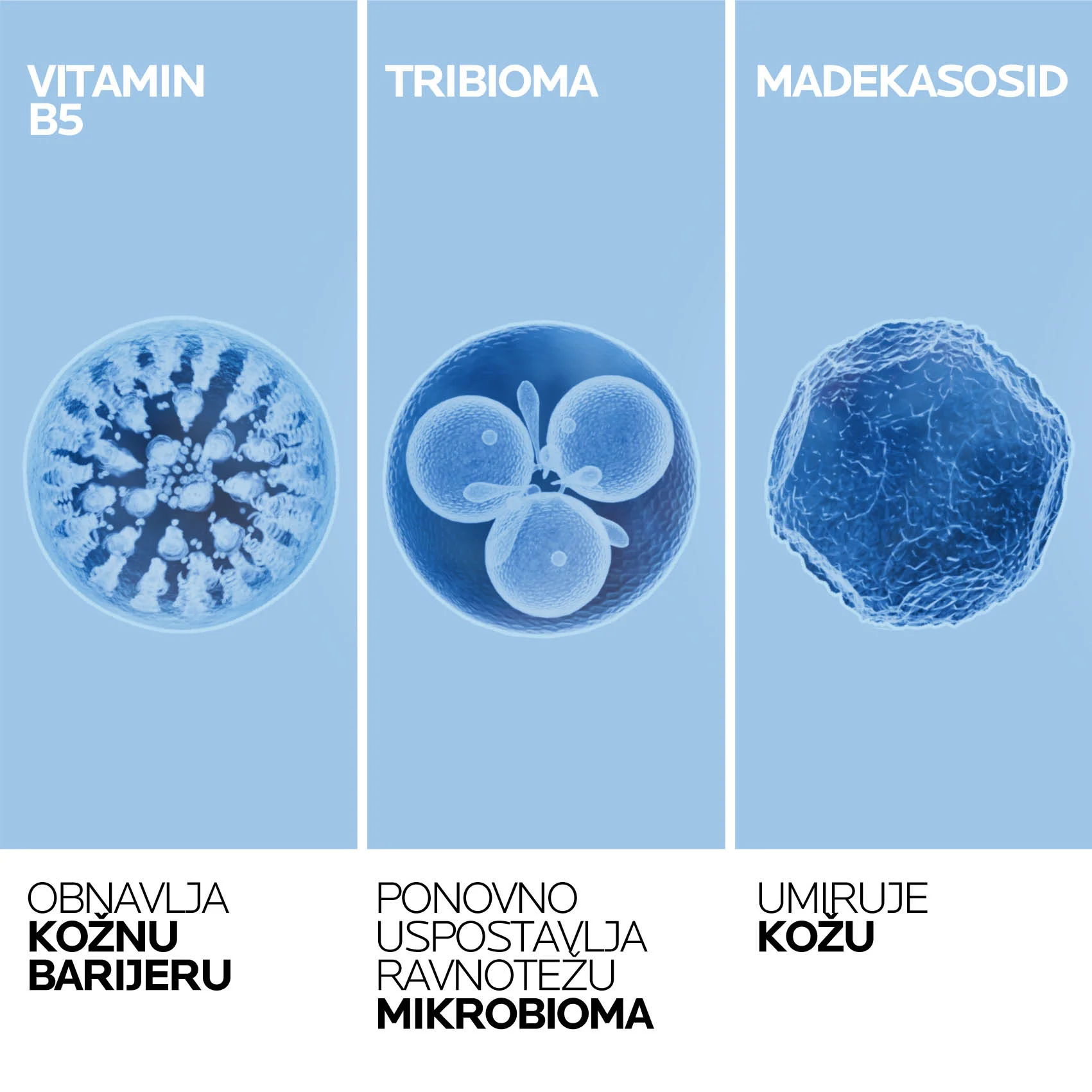 OBNAVLJA: Optimalno obnavljanje kožne barijere: [madekasosid] + [bakar – cink – mangan] + [Tribioma]