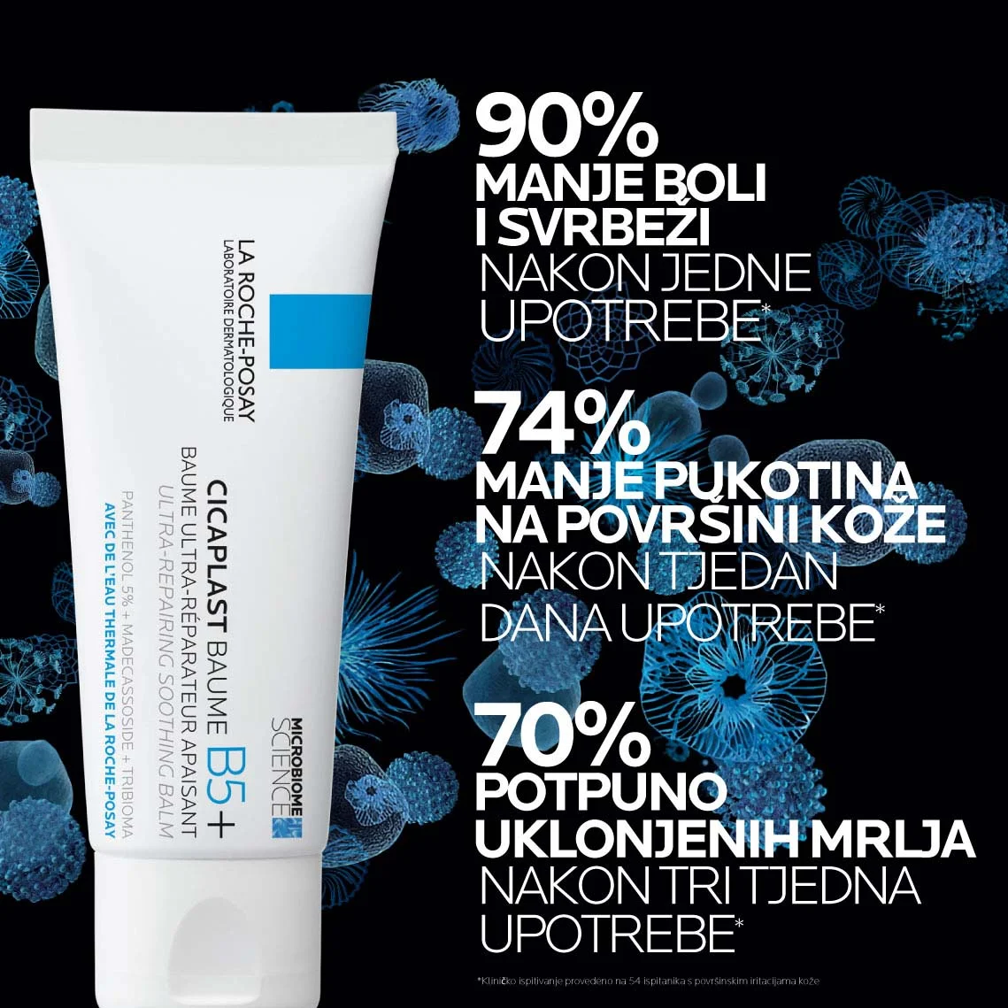 TRIBIOMA: Jedinstveni prebiotički kompleks sastavljen od šećera, biljnih ekstrakata i fermenata. Dokazano ponovno uspostavlja ravnotežu mikrobioma osjetljive kože.