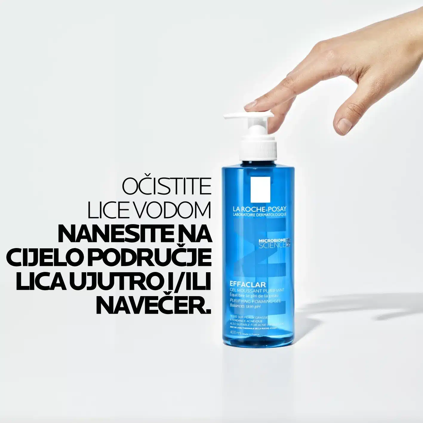 Uzmite količinu kreme veličine lješnjaka i zagrijte je kako biste olakšali upijanje. Nježno, laganim potezima, utrljajte na čelo i lice. EFFACLAR gel nježno čisti masnu kožu, bez isušujućeg efekta zahvaljujući nježnim djelujućim komponentama za čišćenje, posebno odabranima za dobru podnošljivost. Odstranjuje nečistoće i višak sebuma, a kožu ostavlja čistom i osvježenom.