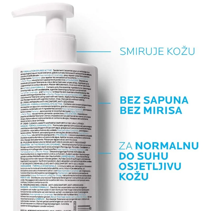 La Roche-Posay TOLERIANE Njegujući gel za čišćenje lica protiv suhoće i osjećaja neugode, 400 ml