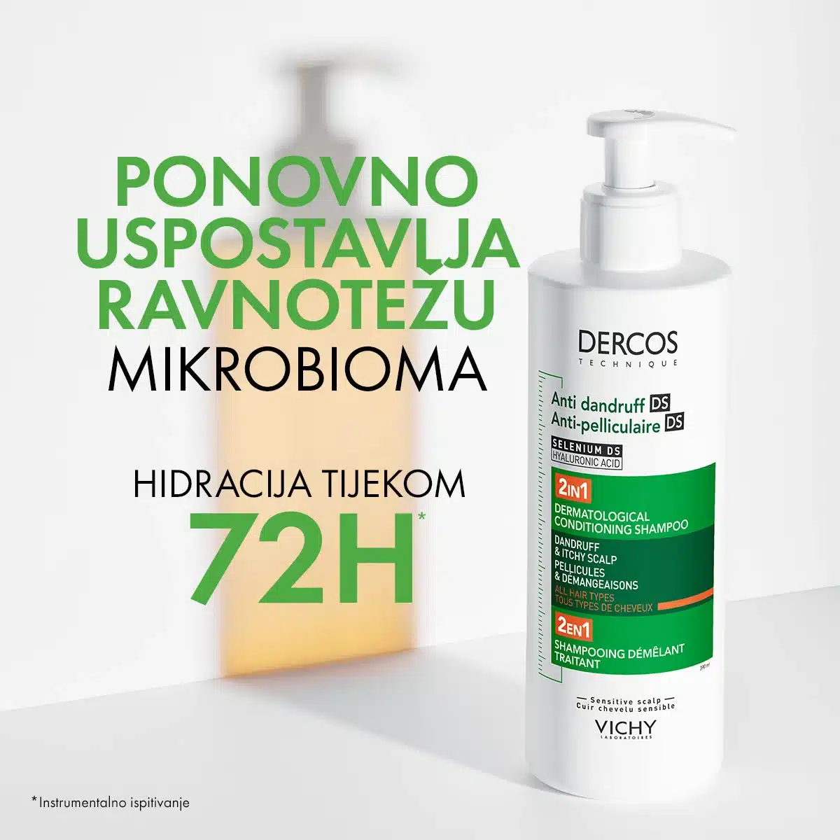 VICHY DERCOS Šampon protiv peruti DS – 2 u 1: Dermokozmetički šampon i regenerator, 390 ml