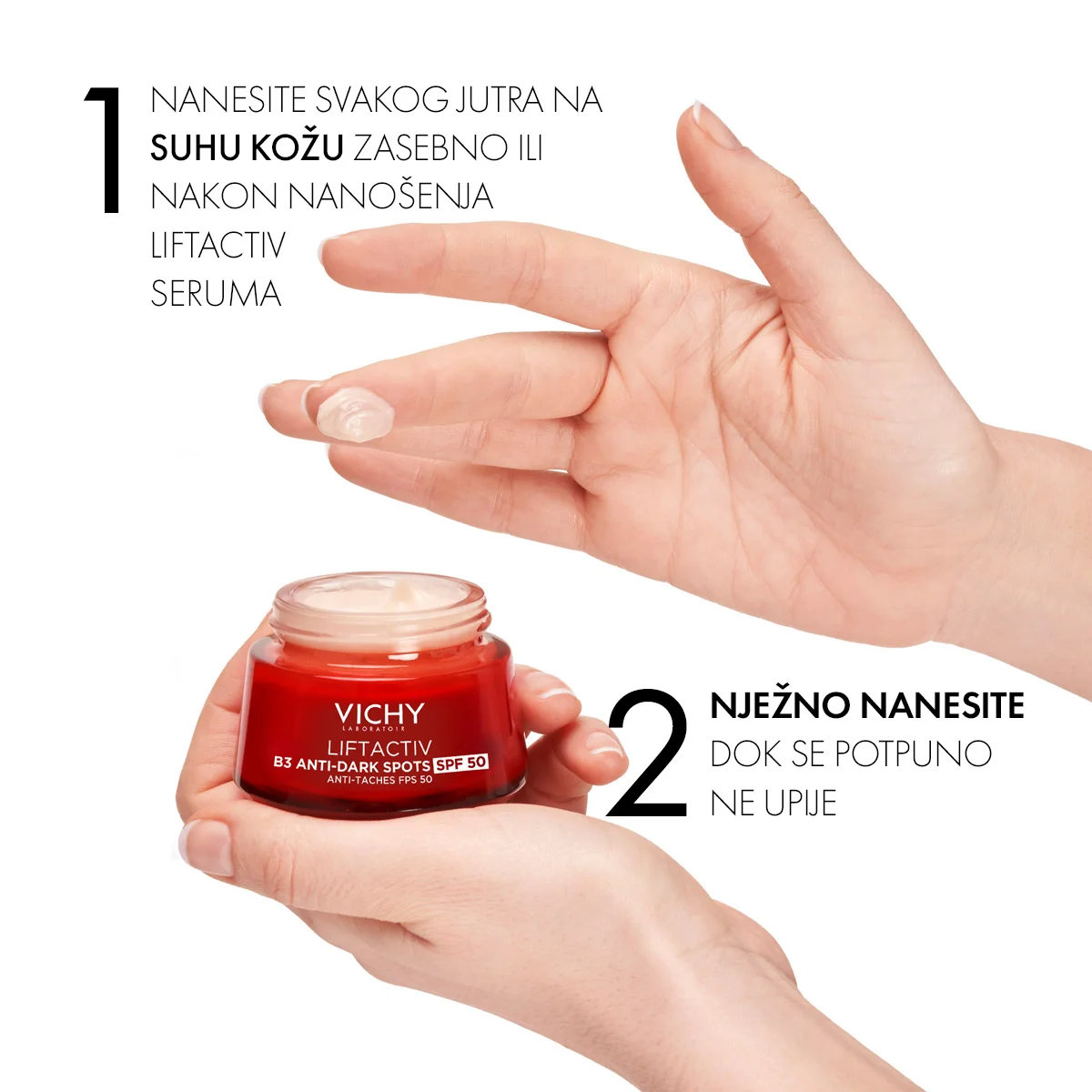 • Nanesite svakog jutra na suhu kožu zasebno ili nakon nanošenja LIFTACTIV SPECIALIST B3 DARK SPOTS SERUMA