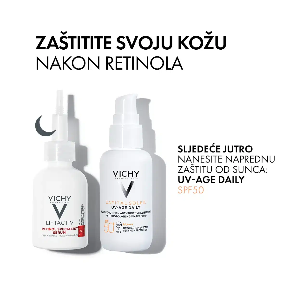 • Sljedeće jutro: Na serum nanesite Capital Soleil dnevnu tečnost protiv znakova starenja sa zaštitnim faktorom iznad 50 za potpunu zaštitu od fotostarenja i štetnih uticaja sunca.