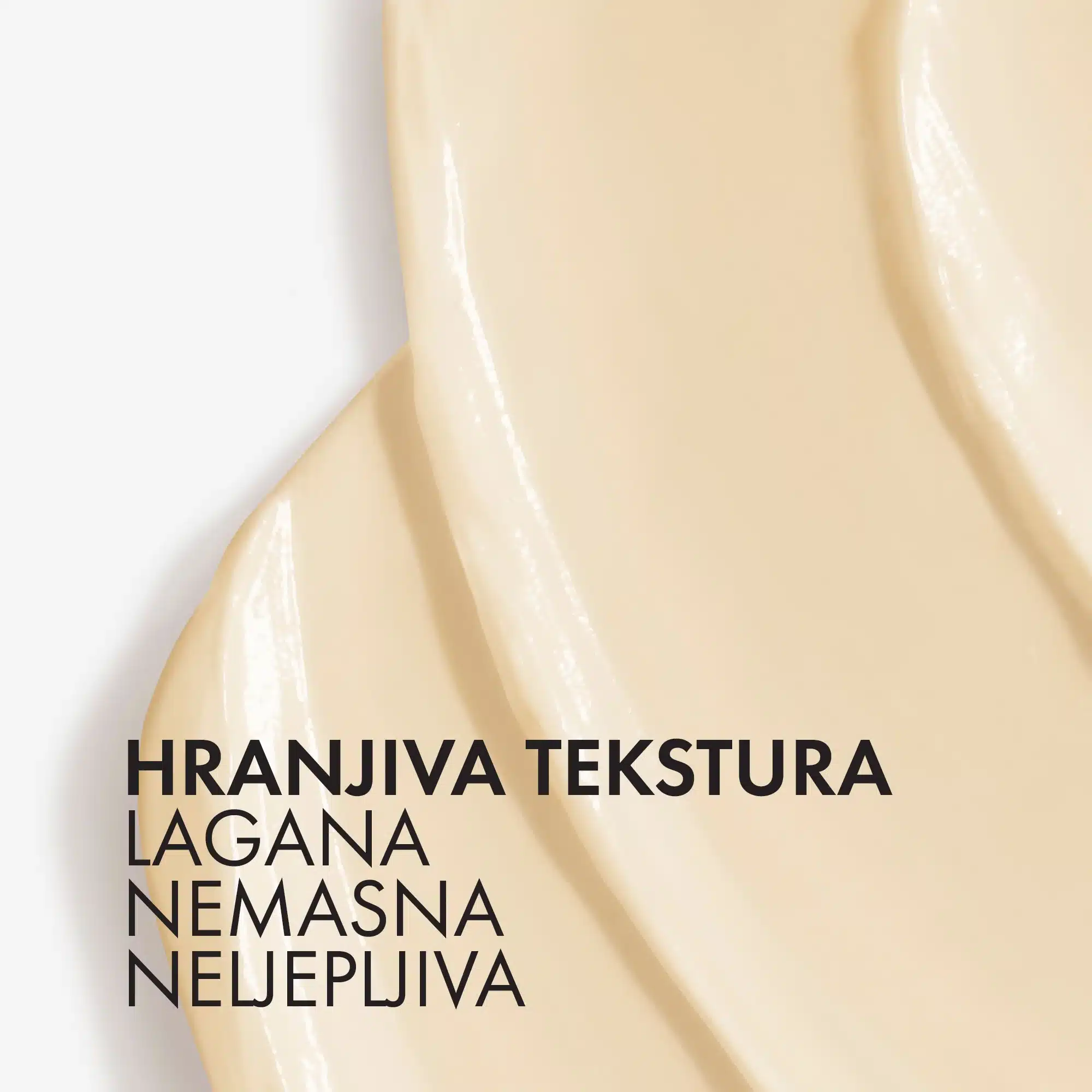 SASTAV: AQUA / WATER / EAU, GLYCERIN, ETHYLHEXYL SALICYLATE, ETHYLHEXYL TRIAZONE ,ALCOHOL DENAT., BIS-ETHYLHEXYLOXYPHENOL METHOXYPHENYL TRIAZINE , LAUROYL LYSINE , DIMETHICONE , BUTYL METHOXYDIBENZOYLMETHANE, OCTYLDODECANOL, BEHENYL ALCOHOL , ISOPROPYL ISOSTEARATE ,NIACINAMIDE , PERLITE , ALUMINUM STARCH OCTENYLSUCCINATE , CETYL ALCOHOL, ADENOSINE , CAPRYLOYL SALICYLIC ACID, CASSIA ANGUSTIFOLIA SEED POLYSACCHARIDE , HYDROXYACETOPHENONE, HYDROXYPROPYL TETRAHYDROPYRANTRIOL ,SODIUM ACETYLATED HYALURONATE , SODIUM HYALURONATE ,TRISODIUM ETHYLENEDIAMINE DISUCCINATE , TOCOPHEROL ,ORYZA SATIVA BRAN OIL / RICE BRAN OIL , ACRYLAMIDE/SODIUM ACRYLOYLDIMETHYLTAURATE COPOLYMER , AMMONIUM POLYACRYLOYLDIMETHYL TAURATE , CAPRYLYL GLYCOL ,CETEARYL ALCOHOL, CETEARYL GLUCOSIDE, CI 77891 / TITANIUM DIOXIDE, ISOHEXADECANE, MICA , MYRISTIC ACID , PALMITIC ACID , PEG-100 STEARATE, POLY C10-30 ALKYL ACRYLATE ,POLYSORBATE 80 ,PROPYLENE GLYCOL ,SODIUM POLYACRYLATE STARCH ,SODIUM STEAROYL GLUTAMATE, SORBITAN OLEATE , STEARIC ACID ,TIN OXIDE , CI 15985 / YELLOW 6 , PARFUM / FRAGRANCE (F.I.L. N70026728/2).