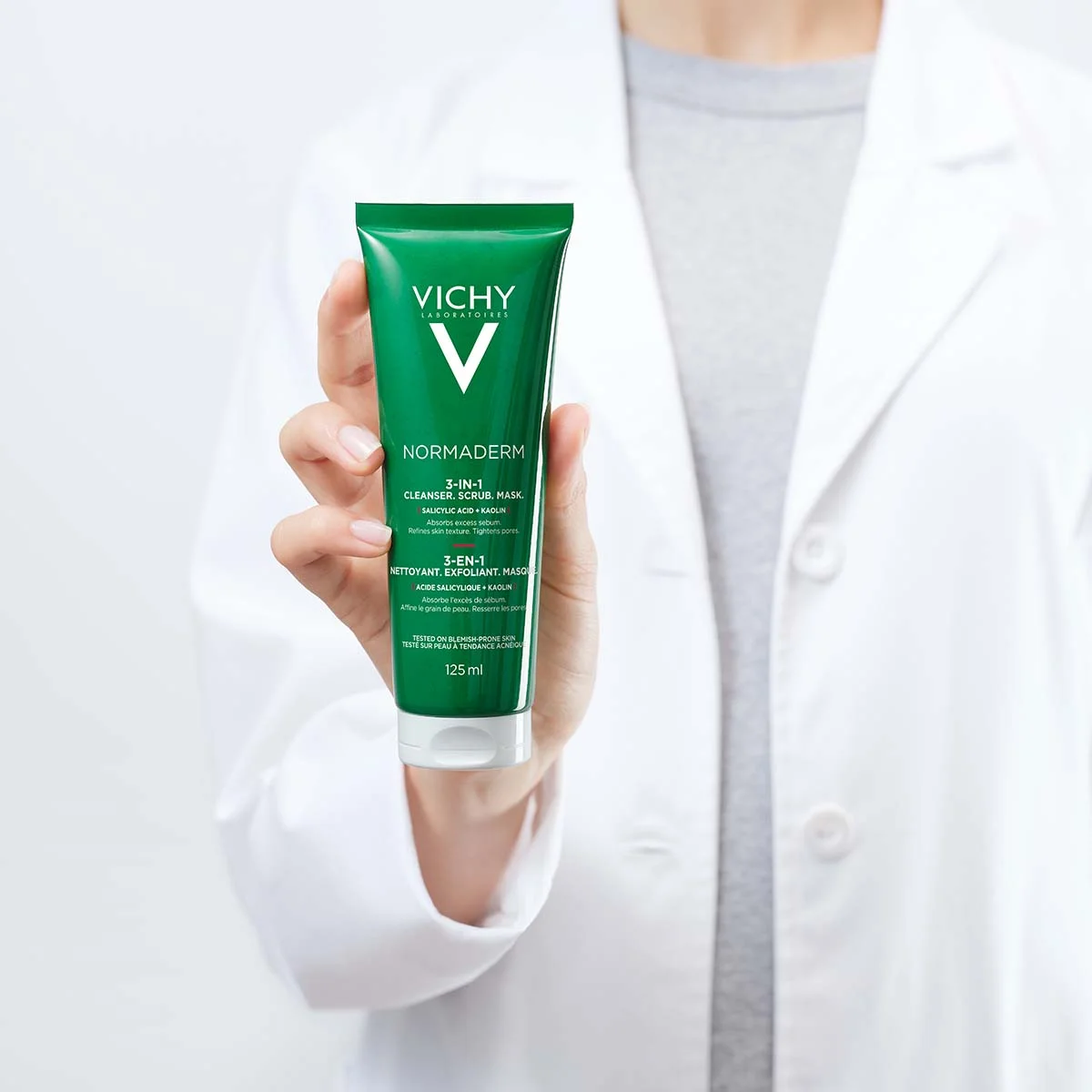 VICHY NORMADERM 3 u 1 njega za kožu sklonu aknama – krema za čišćenje lica, piling, maska, 125 ml